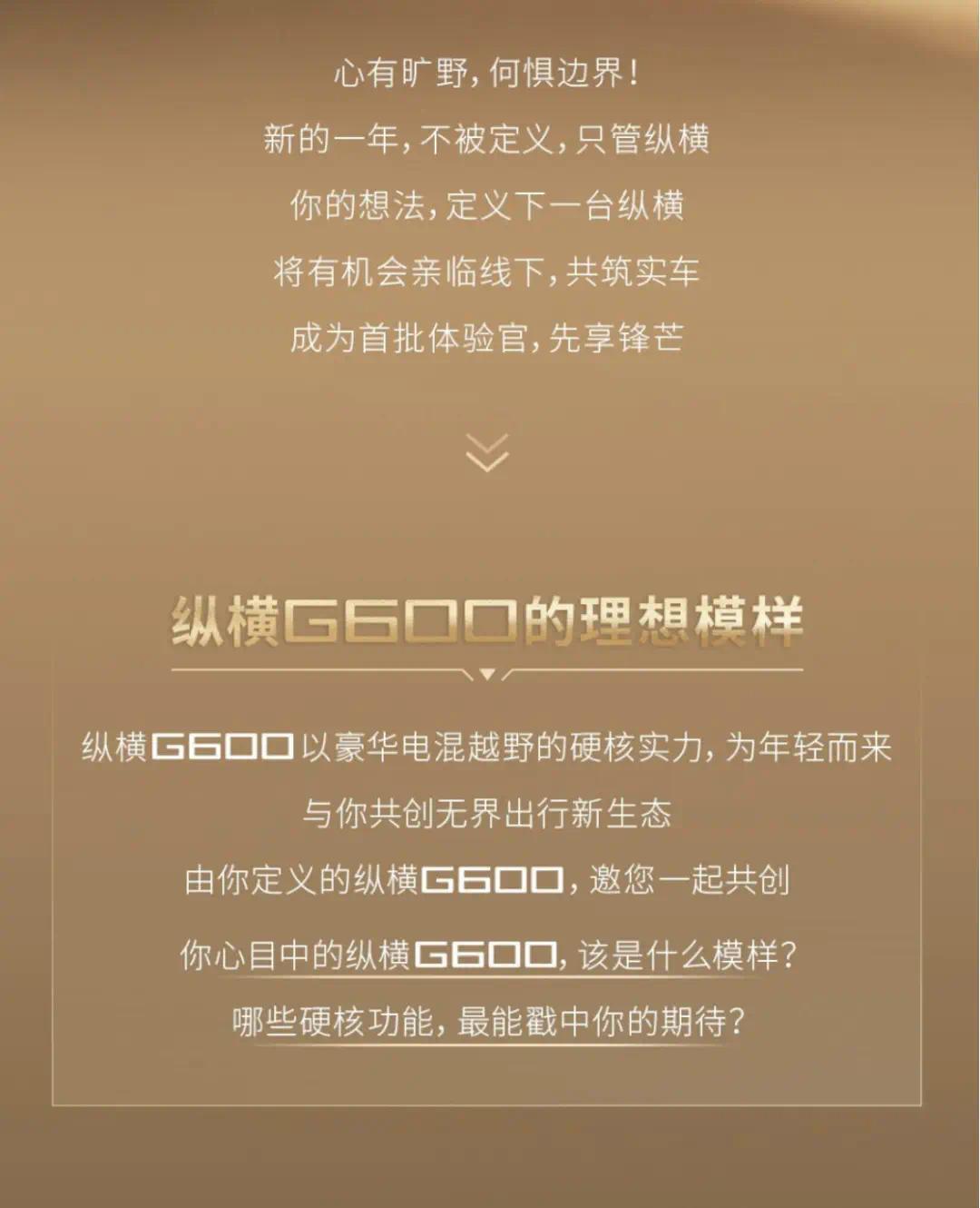 【懂车之道 产品】近日,懂车之道获悉, 纵横G600的官方预告图,并发起招募 " 产品共创官 ",号称下一辆纵横 " 由你定义 "。并发布了新车剪影预告,将与用户共创纵横G600的理想模样和硬核实力。下面,和大家一起来看看在新车的产品力如何?